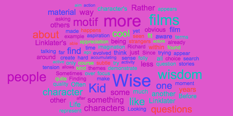 I am a fan of Richard Linklater’s direction. That said, I’ve not seen all his films. Looking at the 20 or so films he has directed (as listed on IMDB), I have seen 10. There is a recurring motif in his films that I am fond of. One I call the ‘Wise Kid’ motif. In crude terms, a character desiring something more, and becoming aware of circumstance and the pitfalls of aspiring to be cool.
